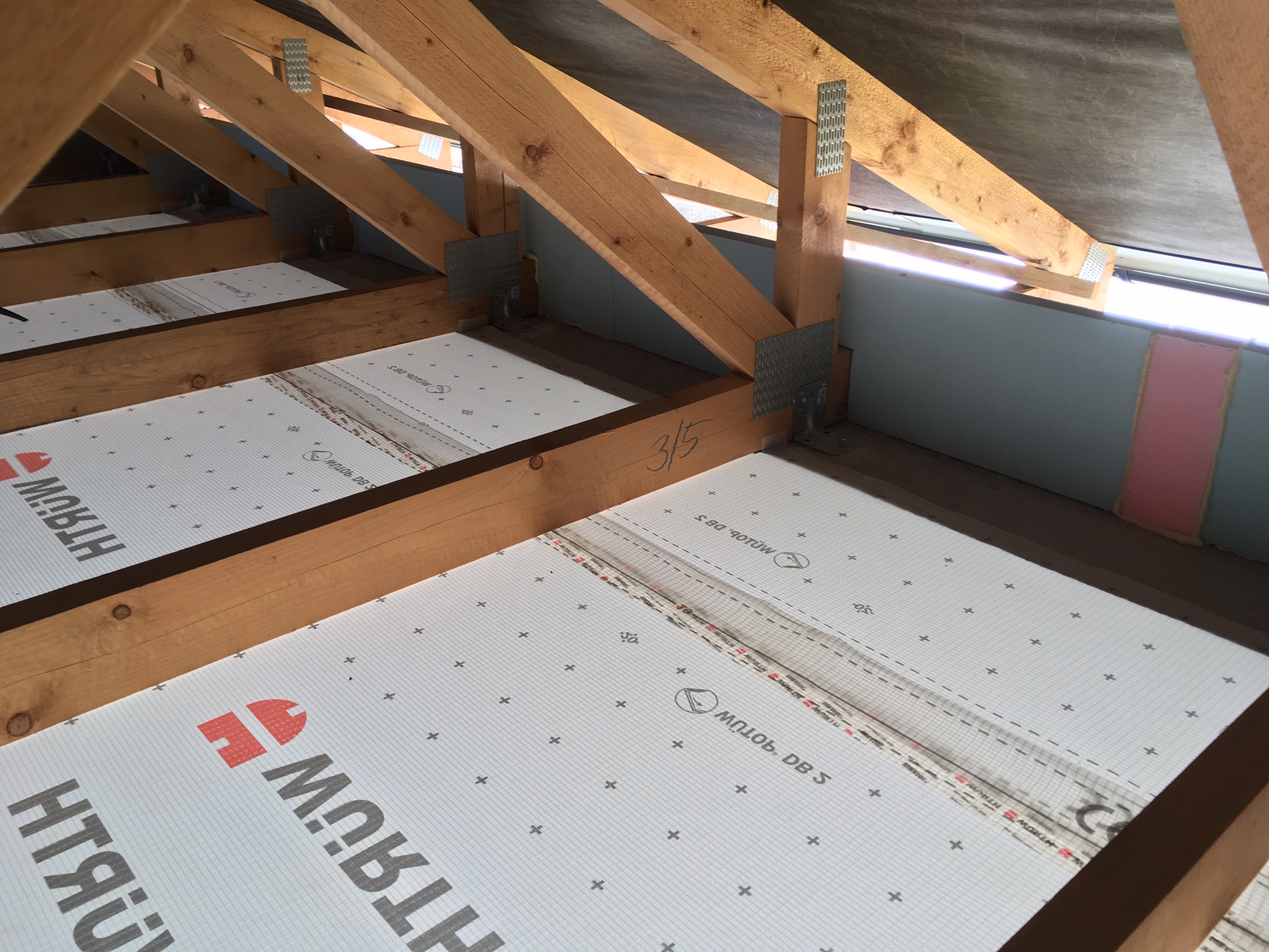 Vďaka vodou nadúvanej technológii a 100% difúzne otvorenej štruktúre sme mohli využiť skladbu s parobrzdou DB 2 od firmy Wurth, s ktorou je celá skladba paropriepustná.
